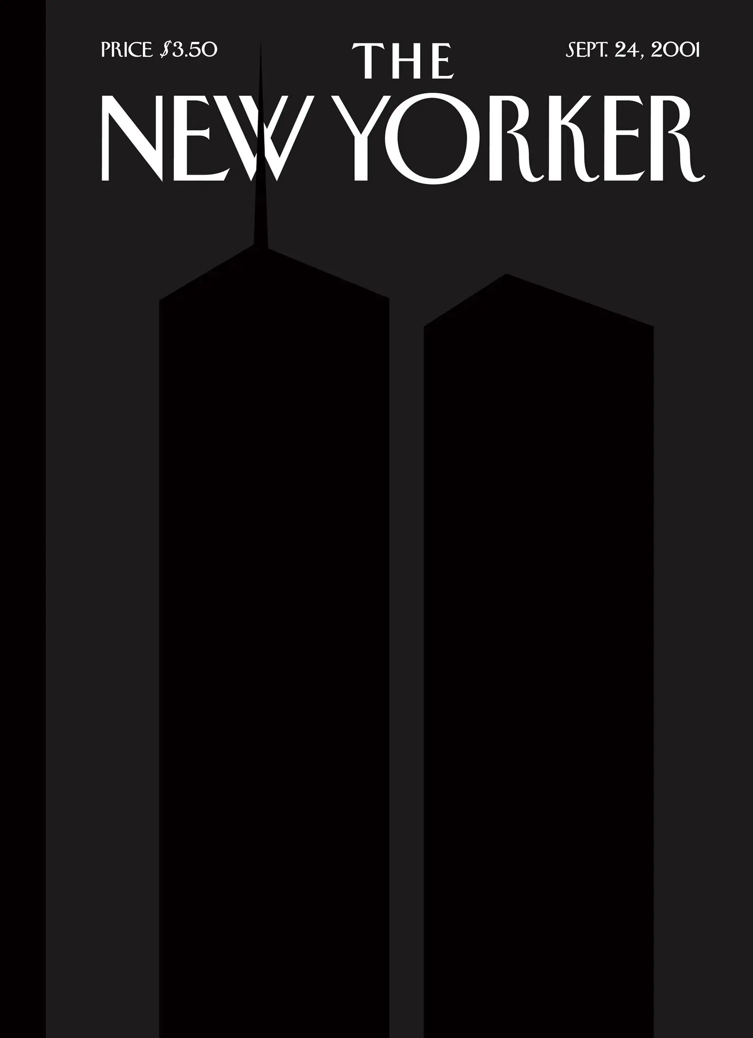 I absolutely agree with the list's inclusion of Art Spiegelman and Francoise Mouly's art direction for the New Yorker on Sept. 24, 2001. I think if I was to reduce the list to the greatest of all time, I believe I would choose the New Yorker cover. It is conceptually perfect as well as being both symbolic and sombre. It is tasteful and impeccably judged.