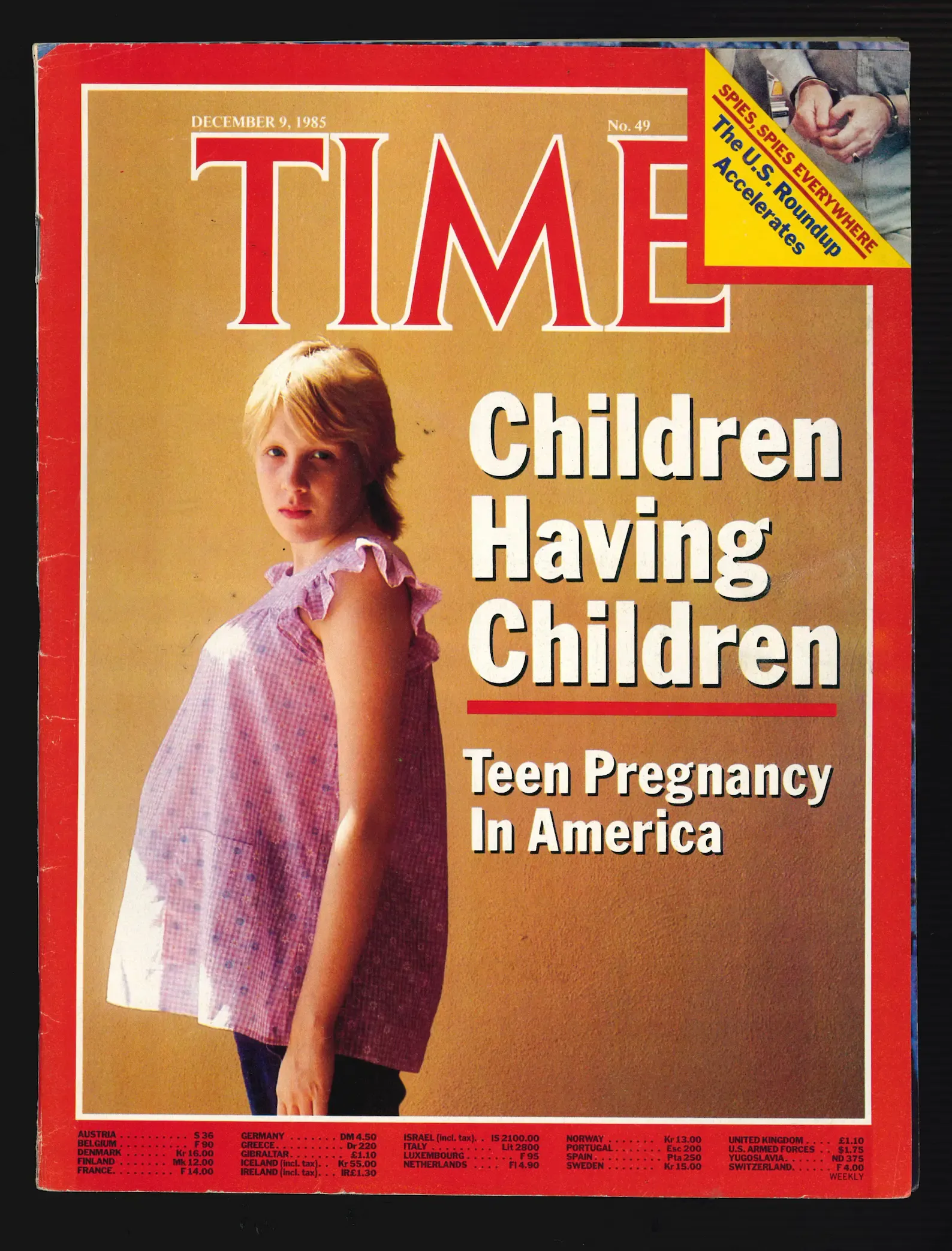 A cover that left a formative impression on me was Time's December 1985 image supporting the article 'Children Having Children'. I was a child at the time, not even 10 but it was an arresting image of a girl, not much older than me, bearing a child. The photograph was taken by Duane Michels and the construction of the image is layered. The gaze. The pink check gingham top underlining girlish innocence. The fall of light drawing focus. Disregarding the politics and complexity of the social issue it represented, it was a confronting image that humanised a social statistic. I have often wondered if it was entirely constructed but to give license to do so would undermine reader trust.