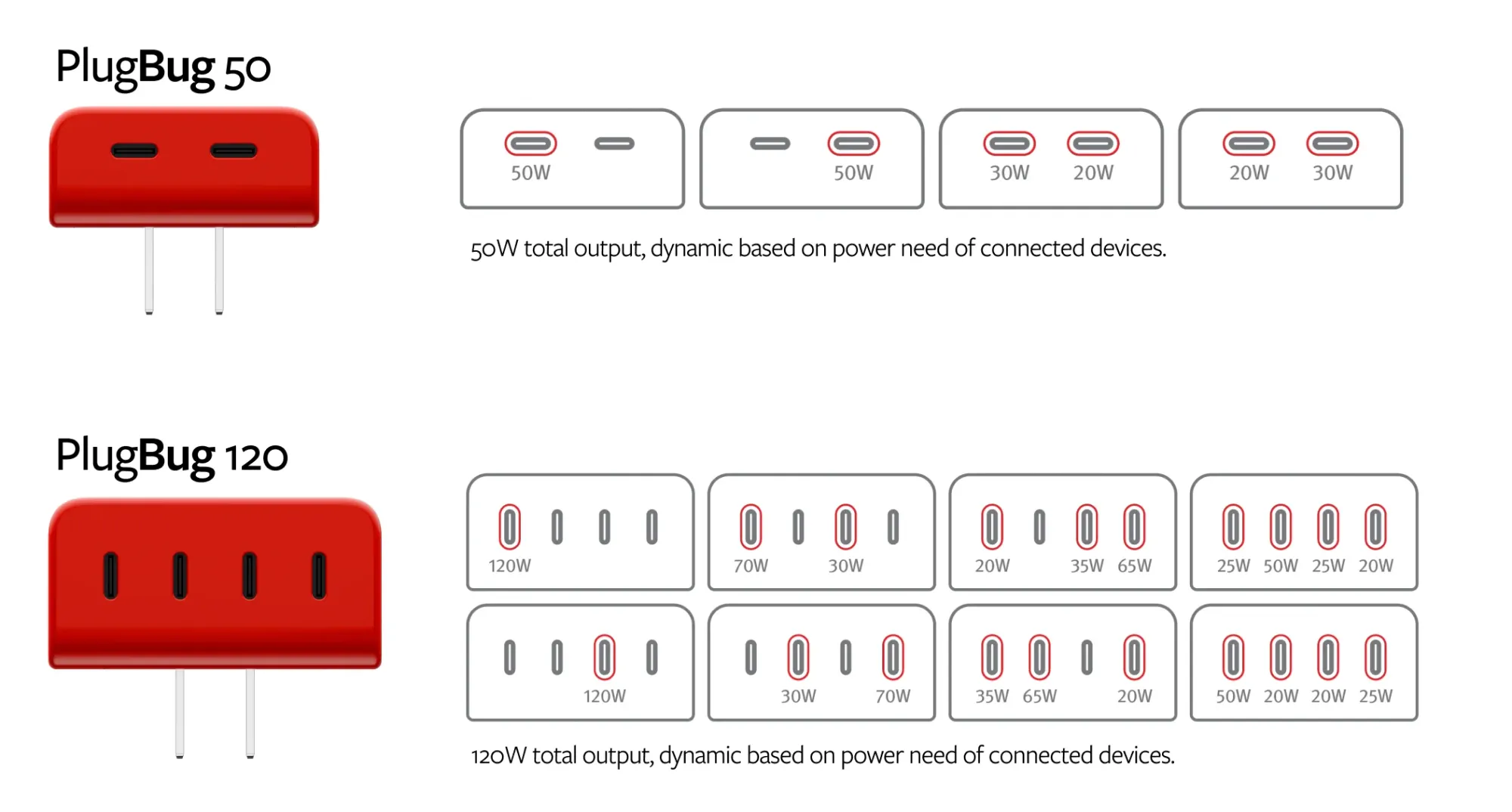 - Smart power delivery fast charges multiple devices at once and will dynamically deliver the required wattage per connected device, the illustration below shows how this is managed.