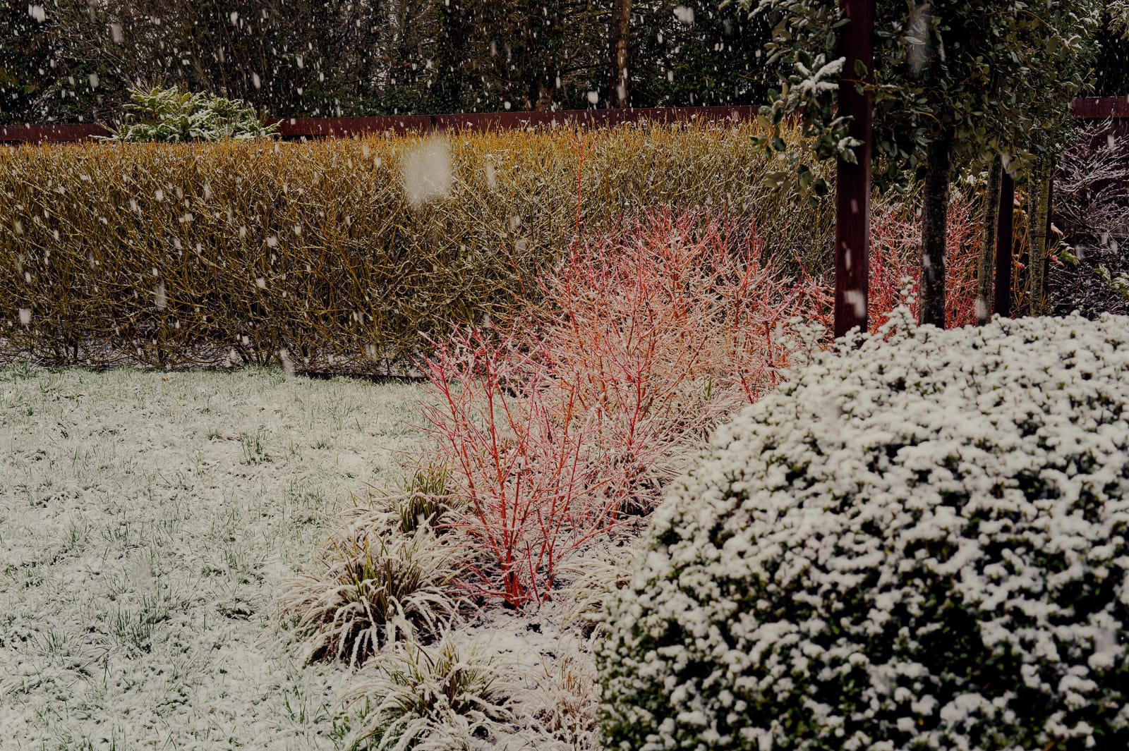 I designed the garden from what was a paddock so it's rewarding to see my design concept realised precisely as I envisaged it. England in winter is generally a drab affair so the dogwoods add much needed and welcome injections of colour.